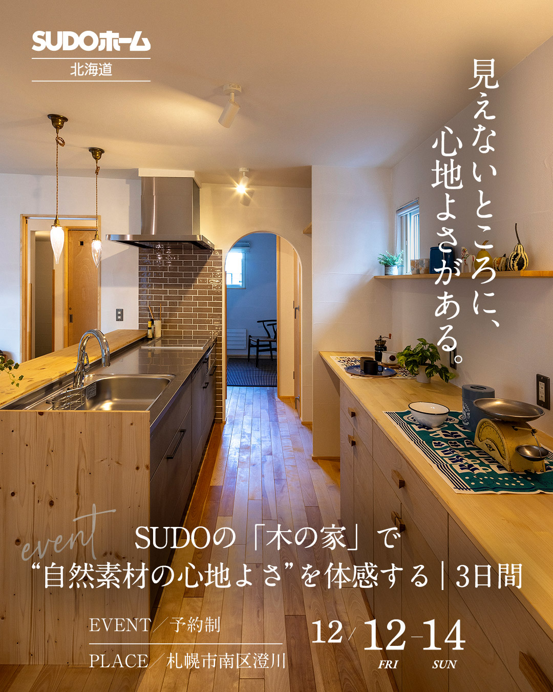 今回のイベントでは、SUDOホームが大切にしている自然素材の空間を、実際の建物でゆっくりと味わっていただける時間をご用意しました。