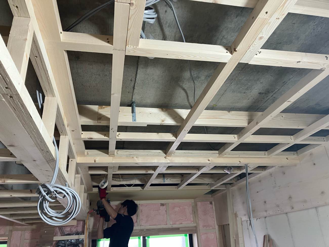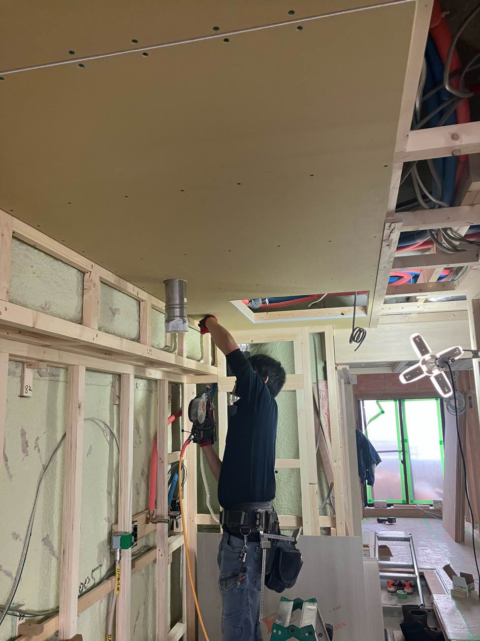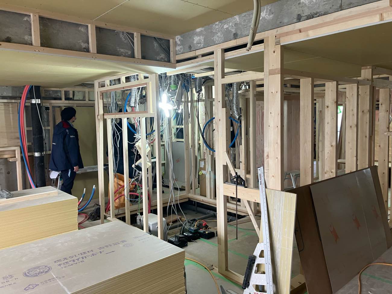 外壁に面する壁の下地がどんどん進んでます!