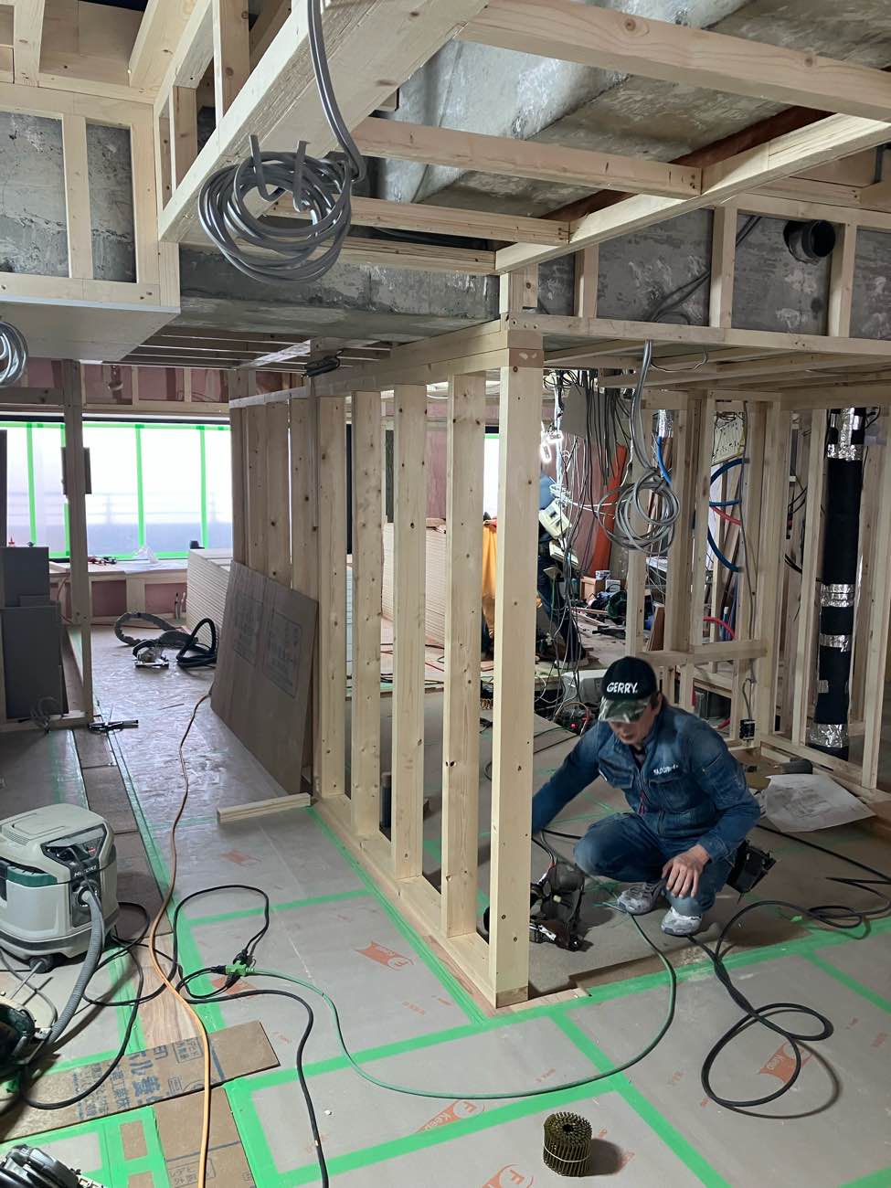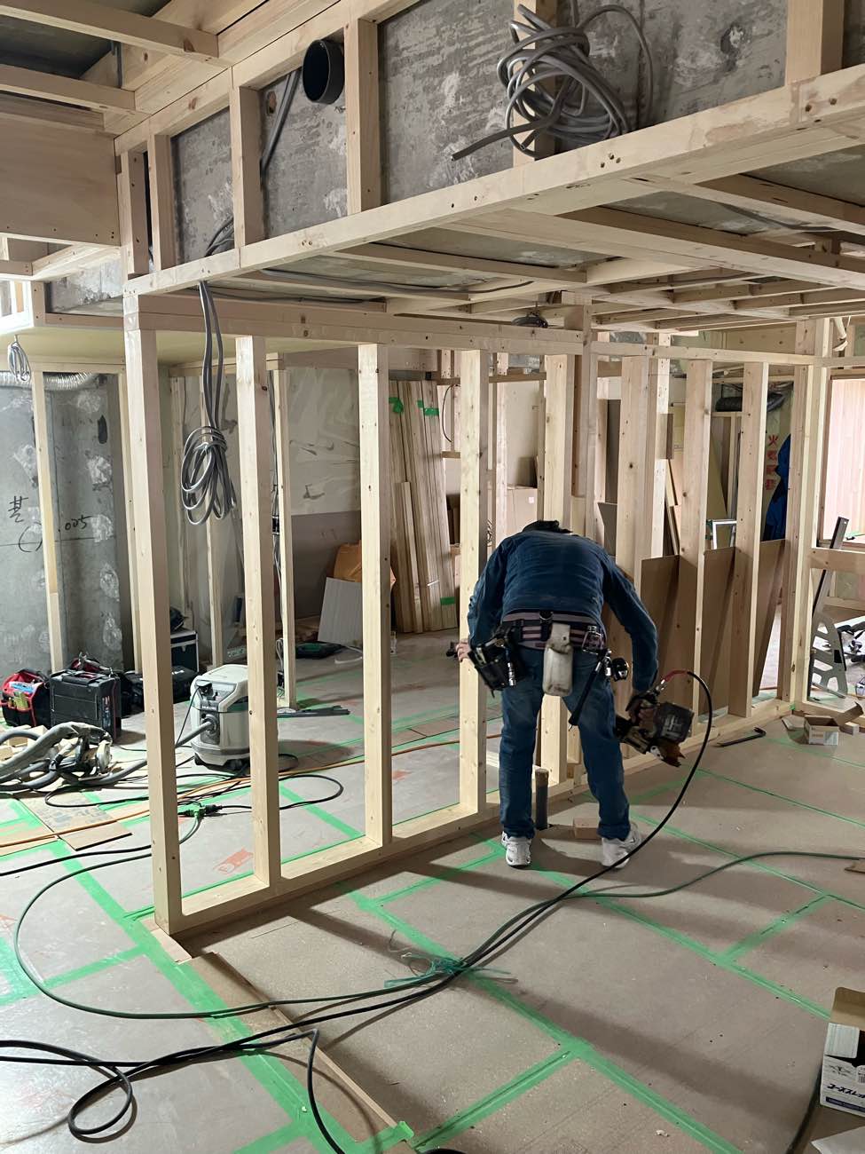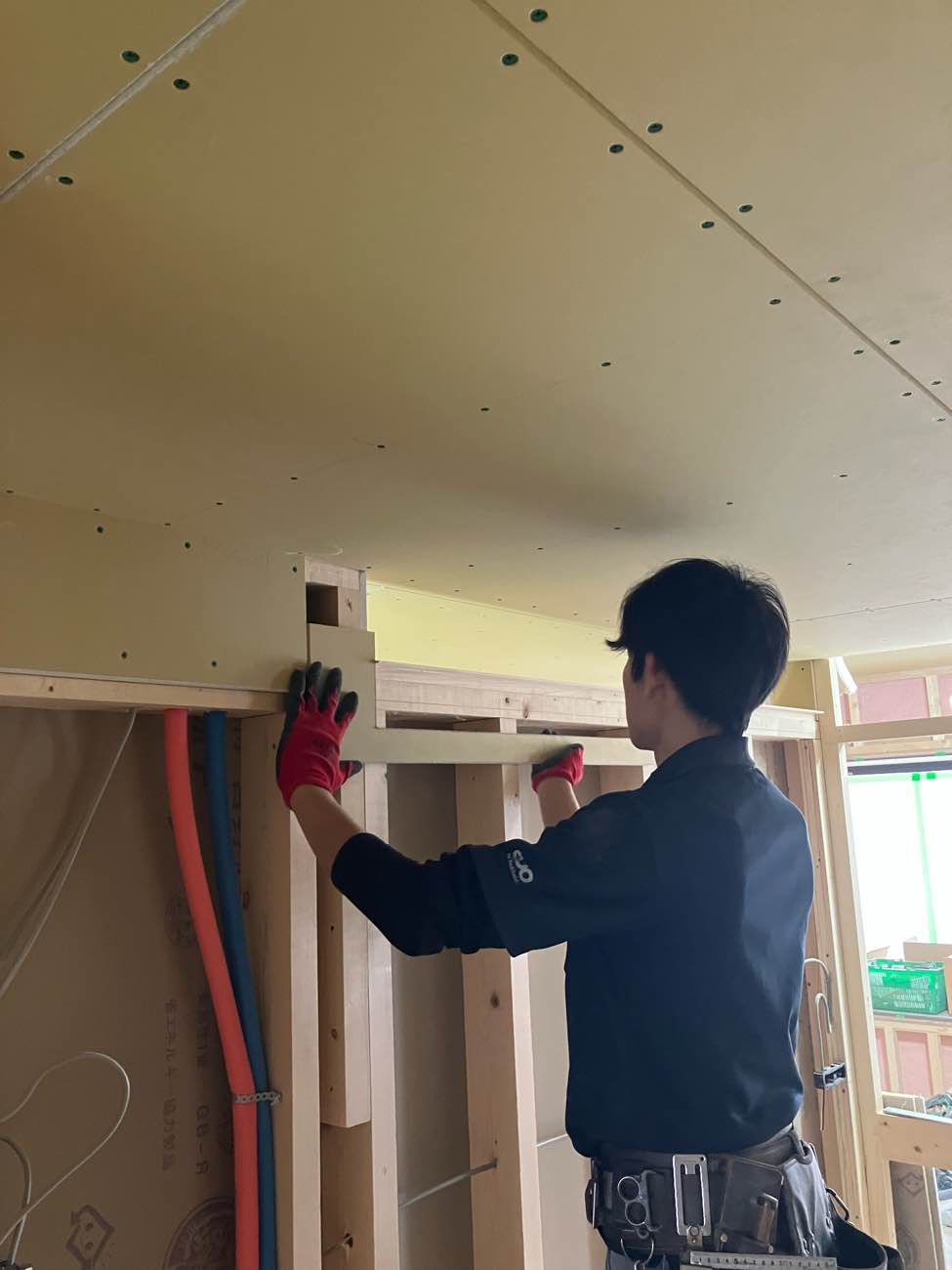 外壁に面する壁の下地がどんどん進んでます!