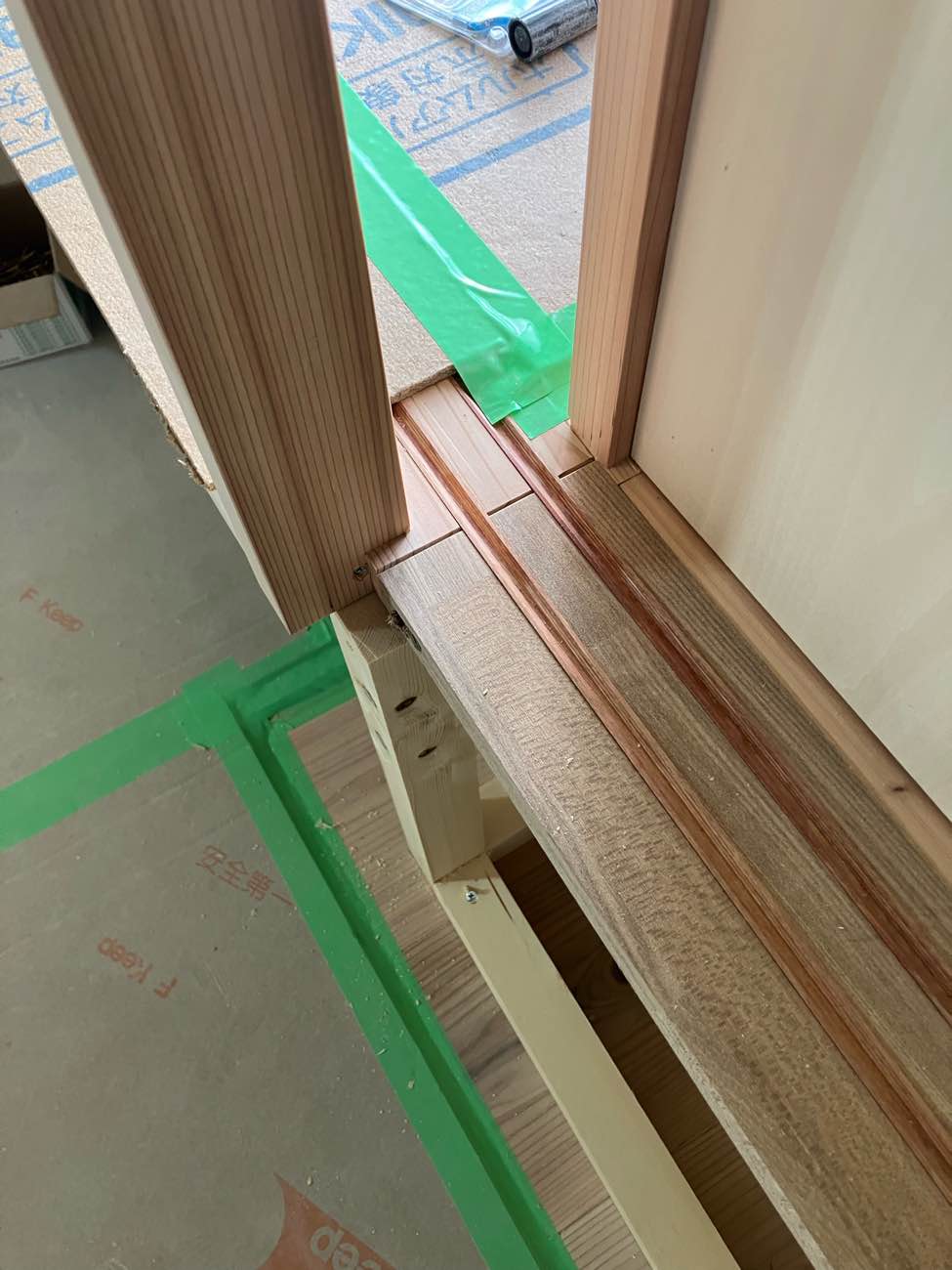 段差部分をどう納めるか、色々検討しております。採用するのはKiKiと同じく「吉野杉」