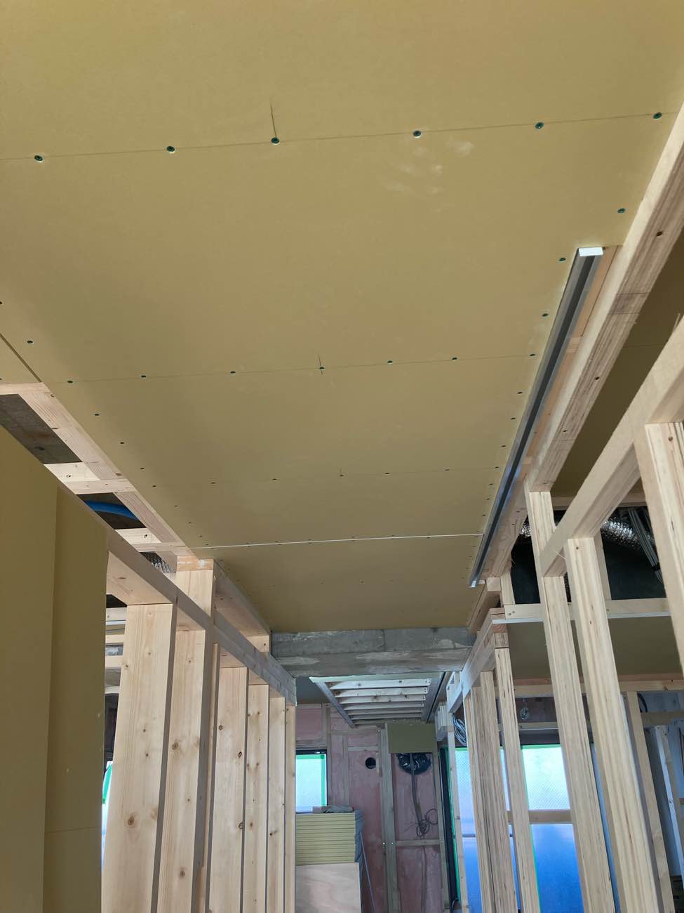 天井のボード貼り始めてます。