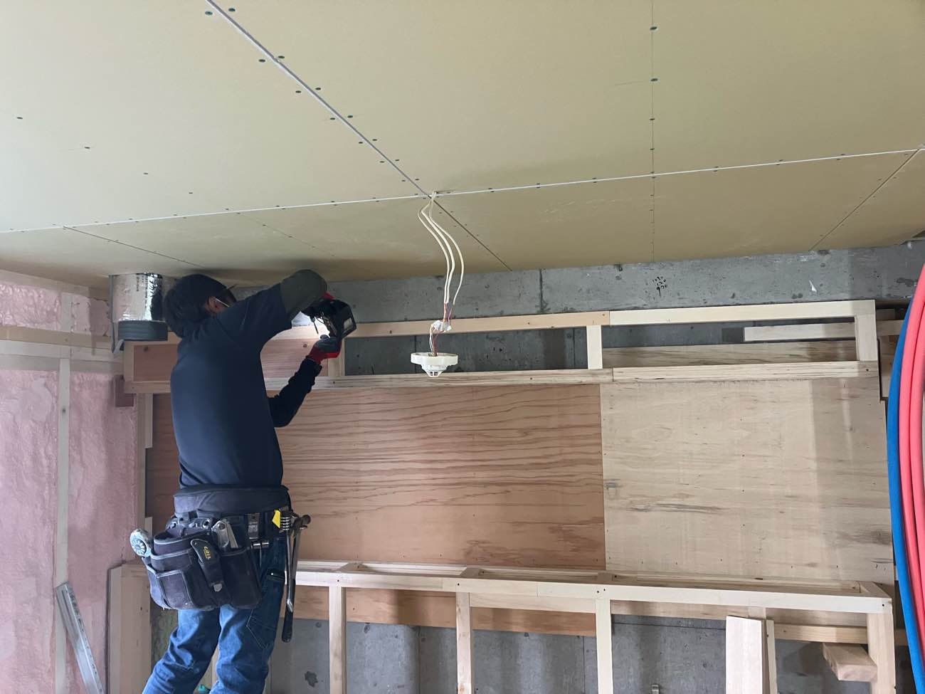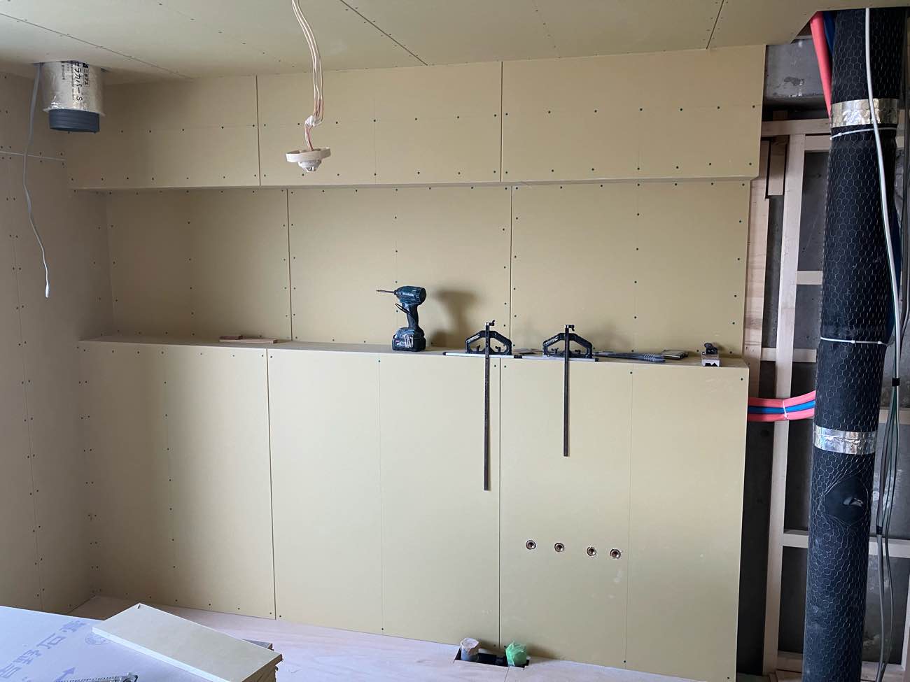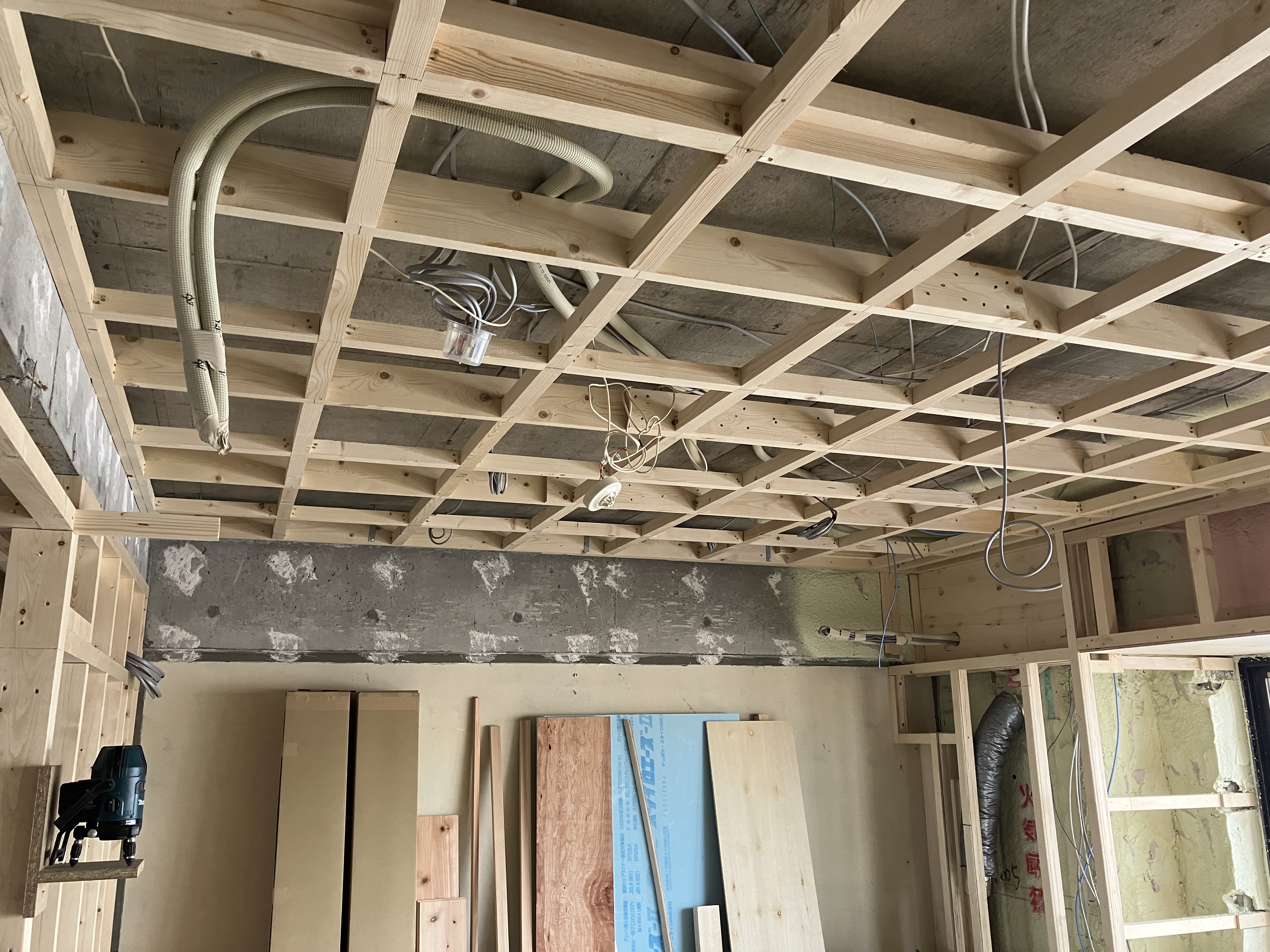 下地も出来て天井のボード貼り、準備OKです。