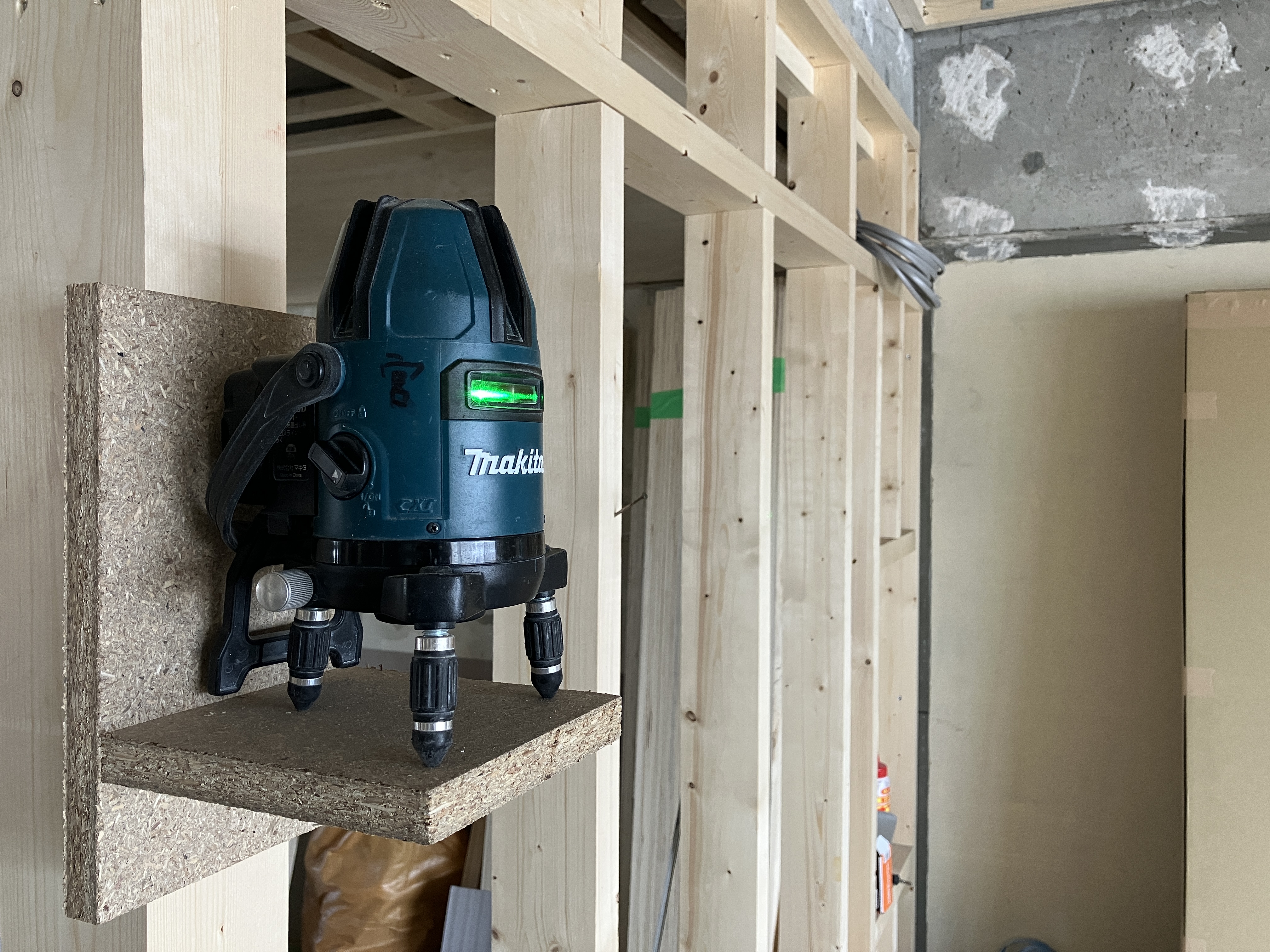 ここもレーザーを使用して水平を見ながら作業します。