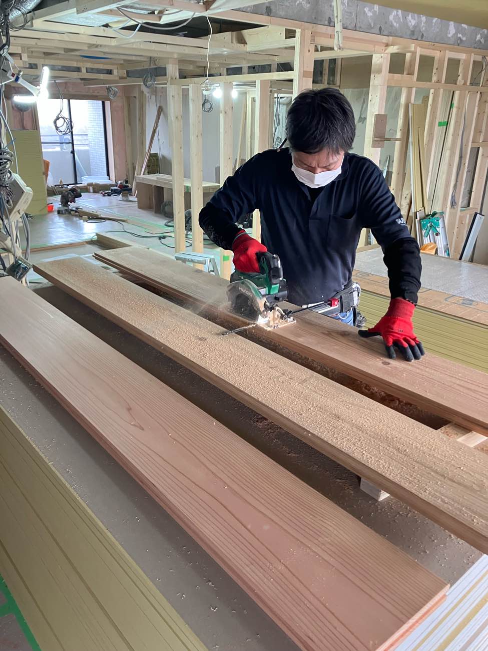 もう少しで杉材に囲まれた空間が完成します!