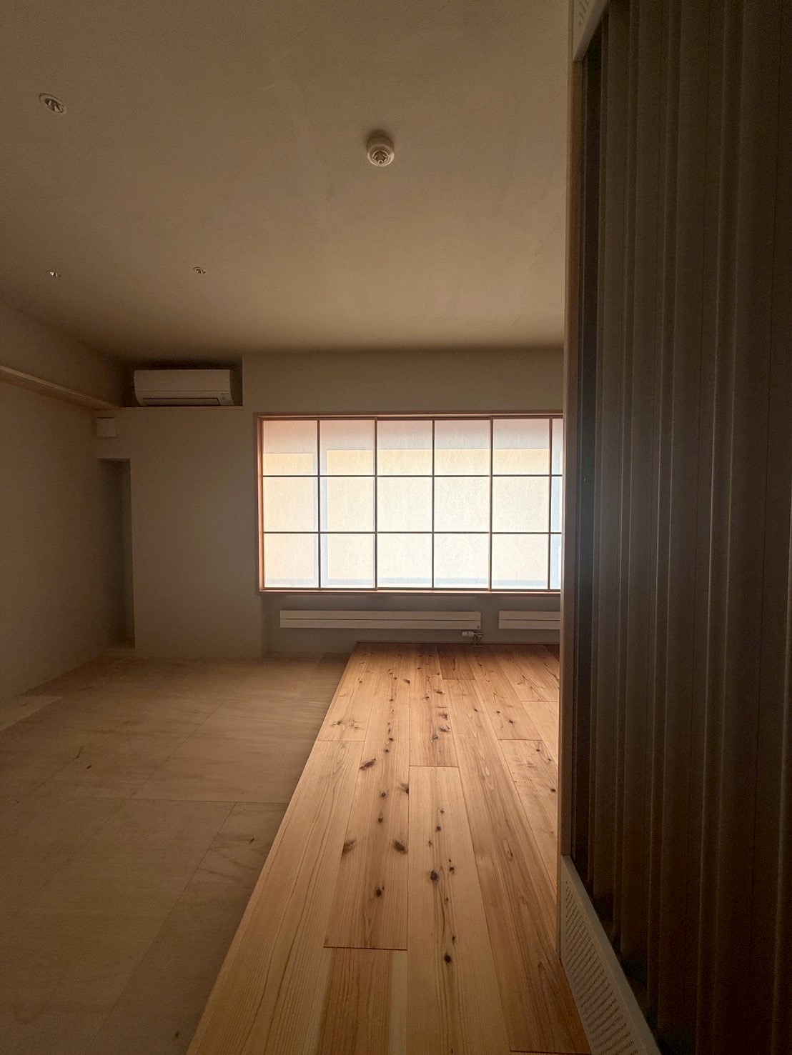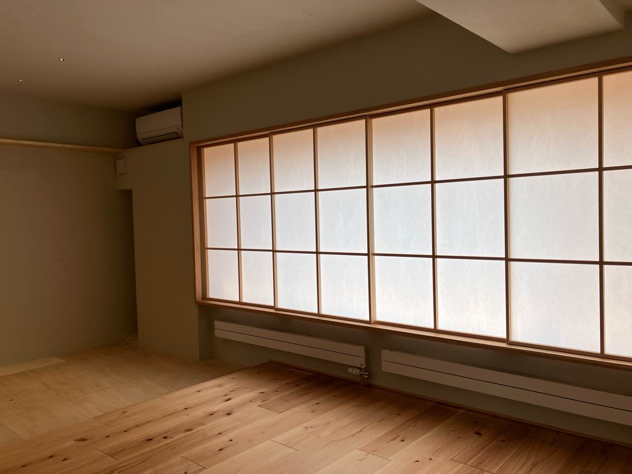 エアコンも、付加断熱と障子によって出た壁を利用してうまくはまっております。