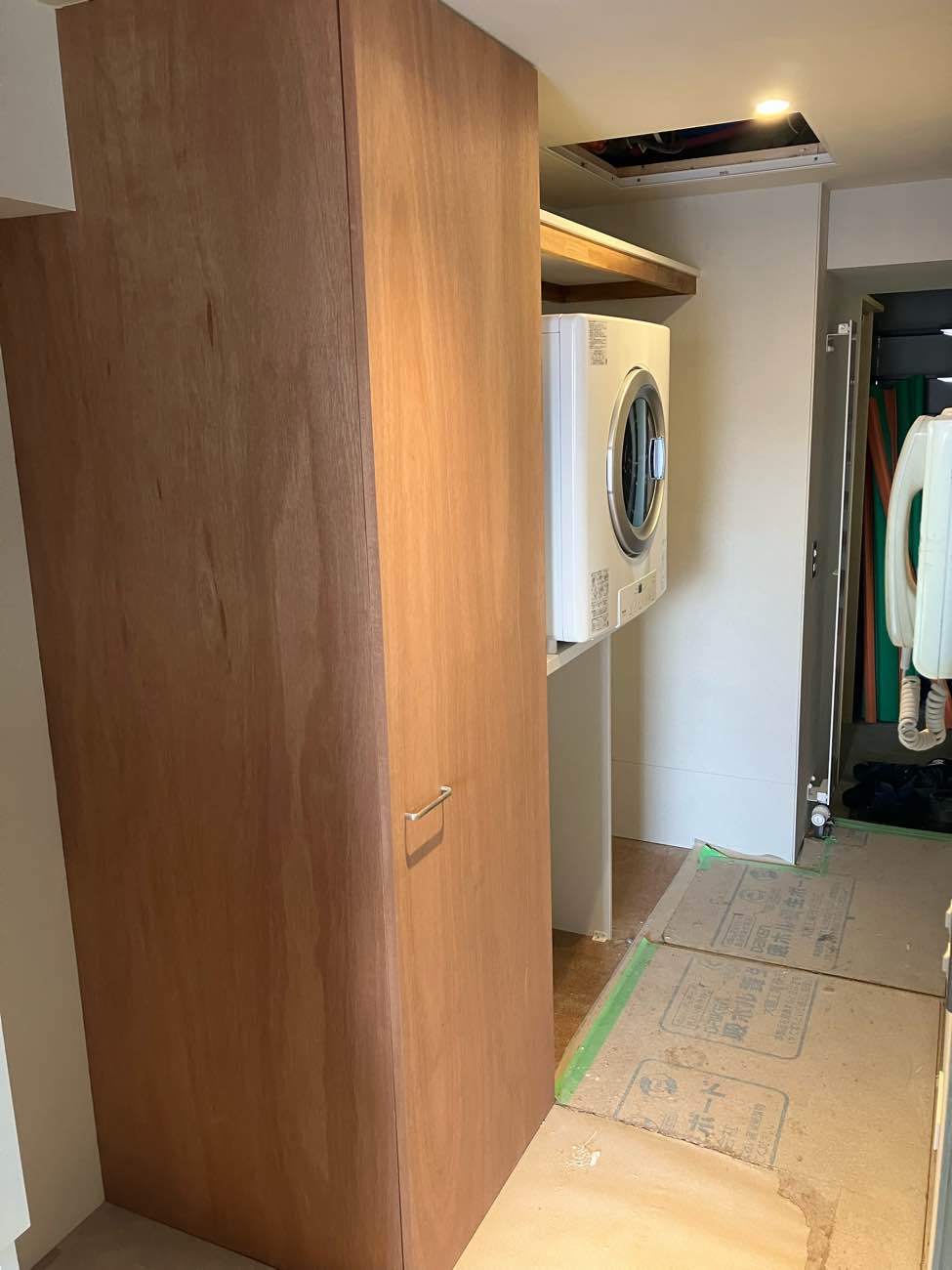 ガス乾燥機、乾太くんの設置し、ラワン材を使用した収納も完成。