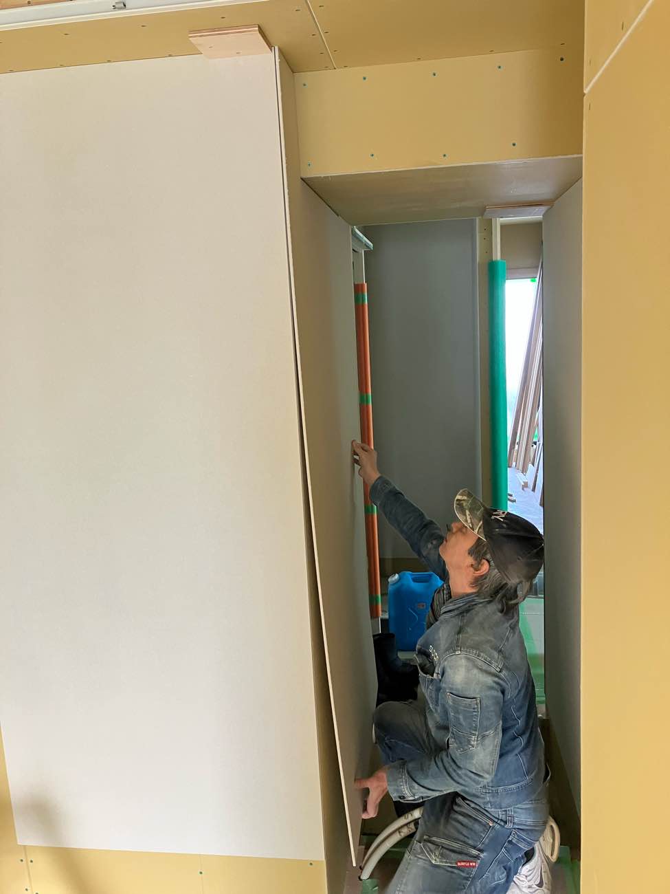 石膏ボード貼りがほぼ終了です。