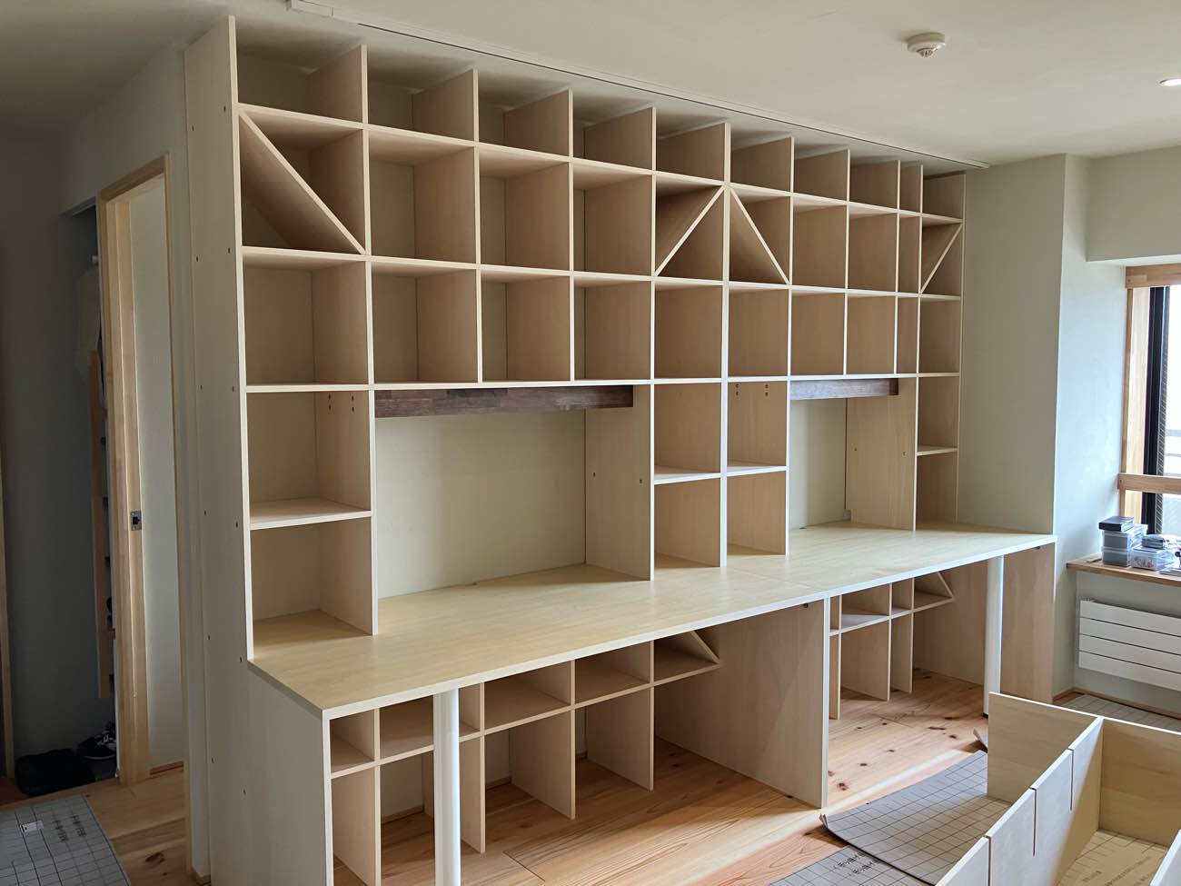 これから本棚が設置されます。勉強、読書、テレワーク、そして出窓に腰掛けたり、