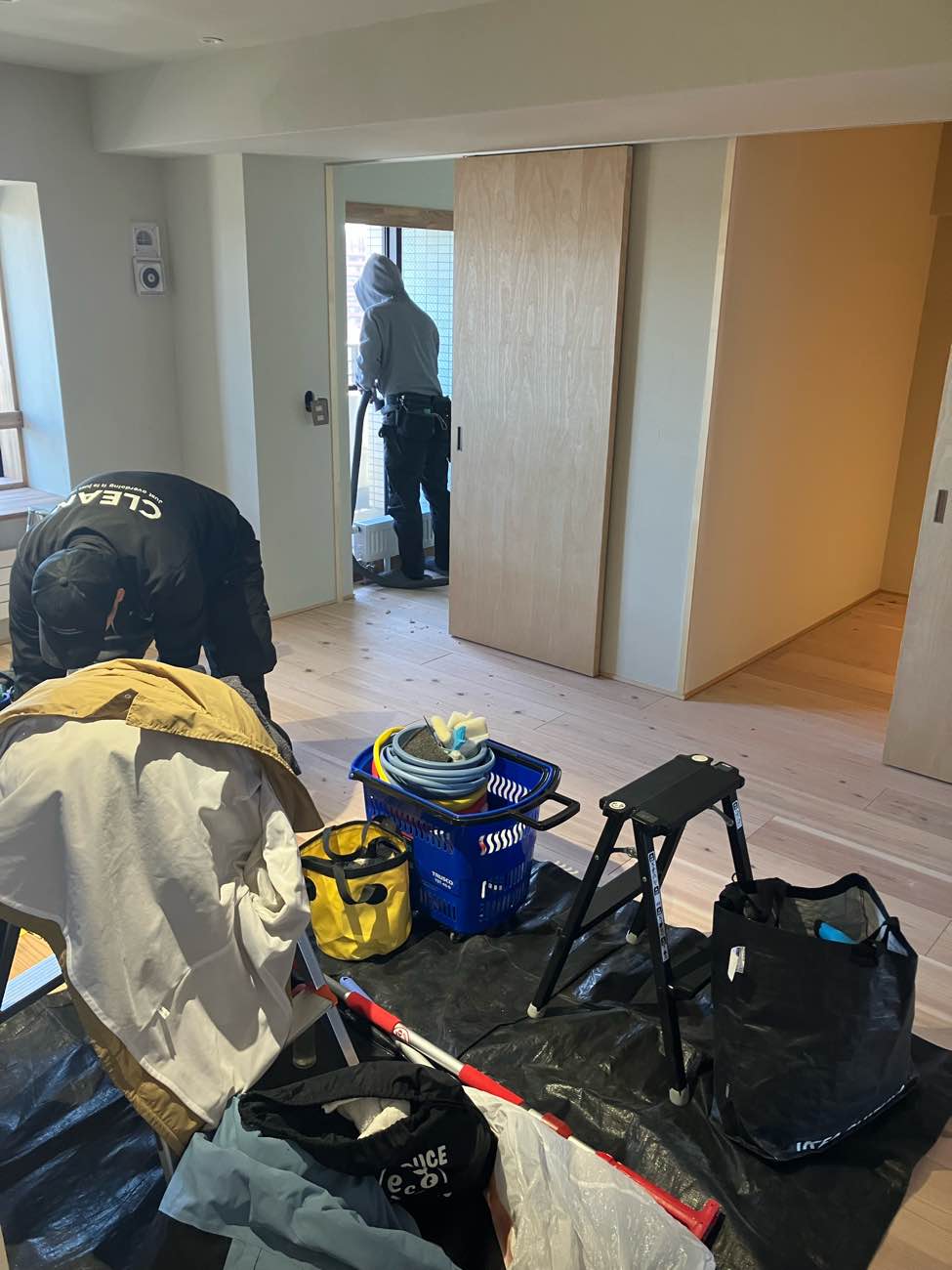 床の養生を剥がし、通常だと「粗美装」となるのですが、引っ越しが迫っている為、ほぼ本美装をここで行いました!
