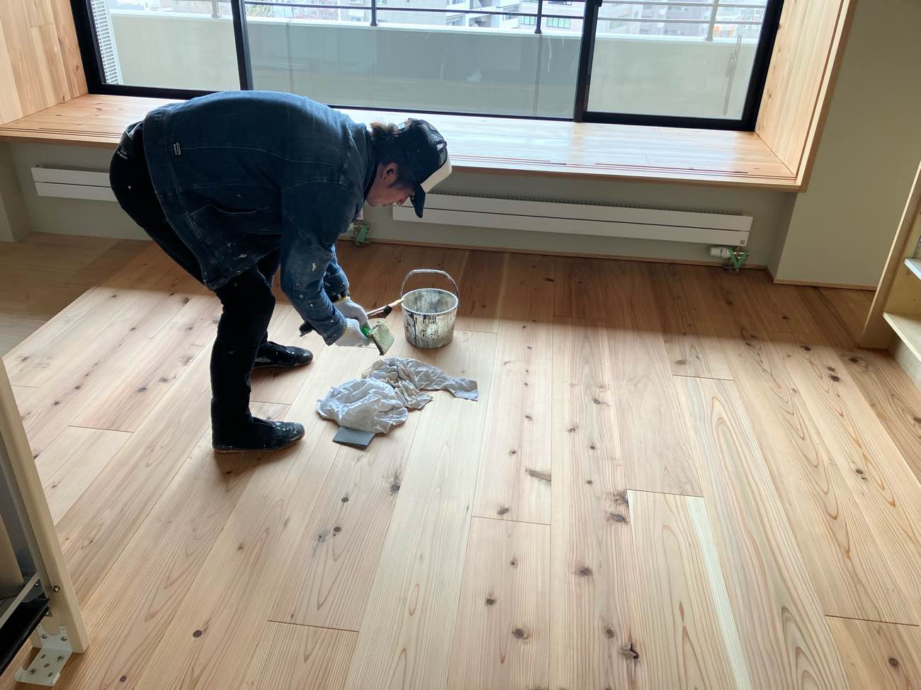 次の日は床塗装1回目、そして今回2回目の仕上げ塗装になります。