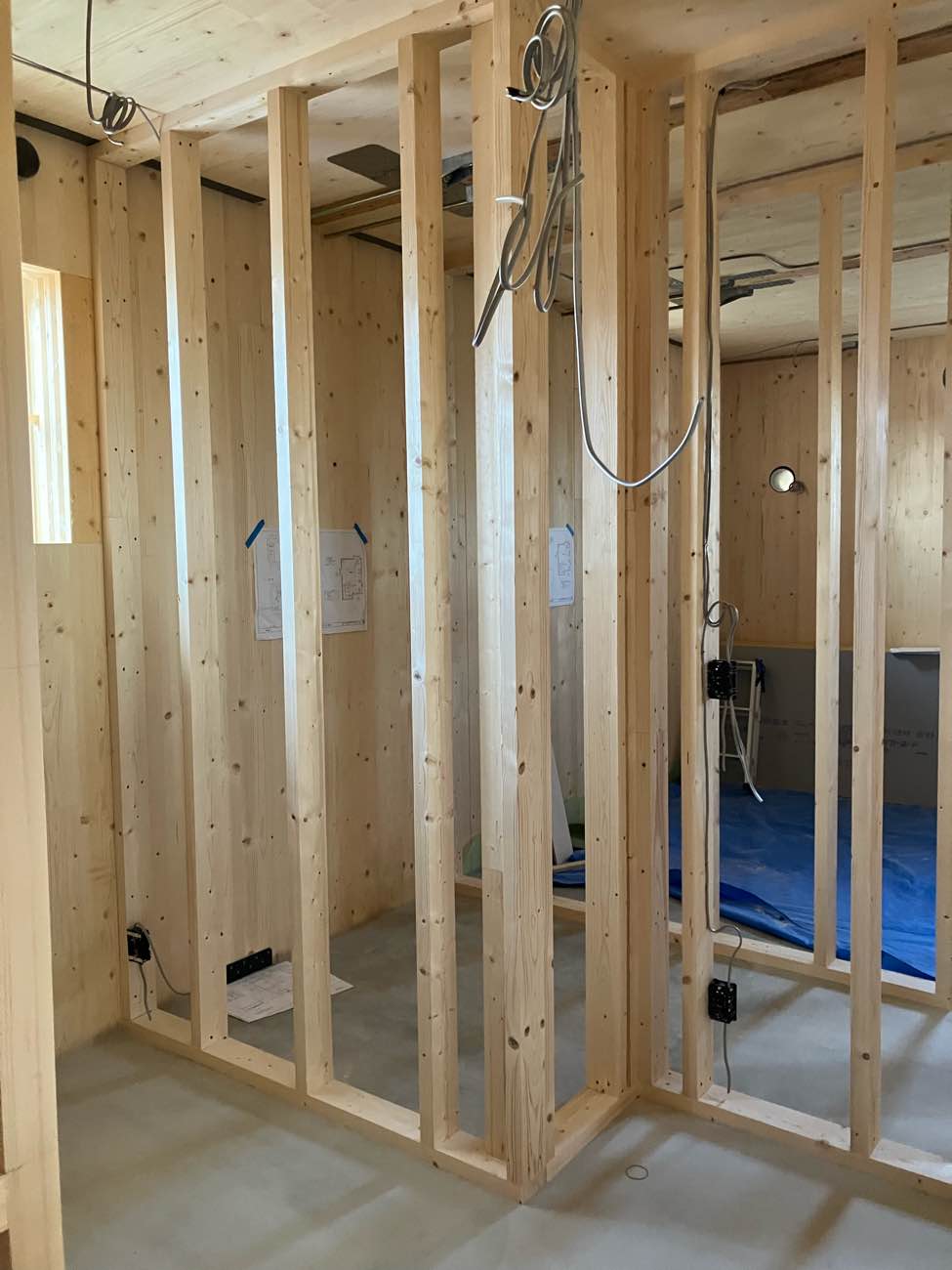 こんな感じで間仕切り壁の骨組が立ち上がってきましたニョキニョキ…