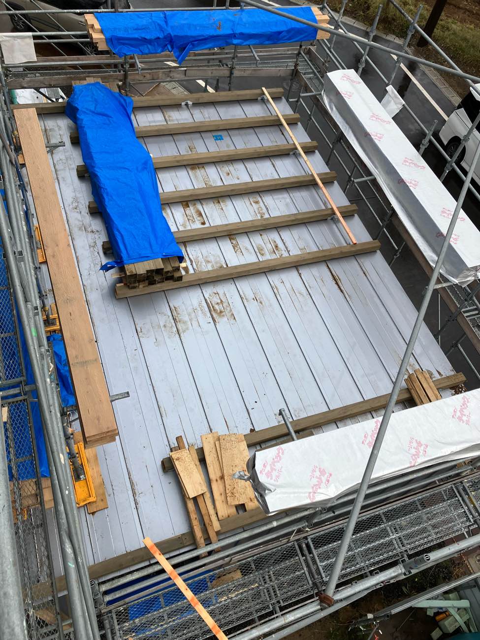 バルコニーになる部分、まだ板金施工で止まっていましたが、ここにデッキを組み立てていきます!