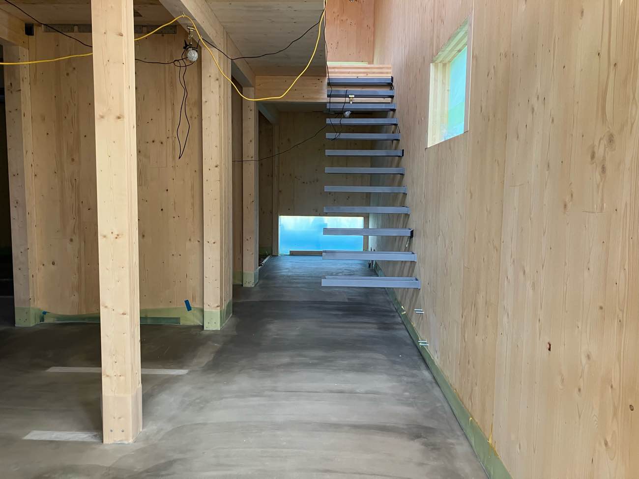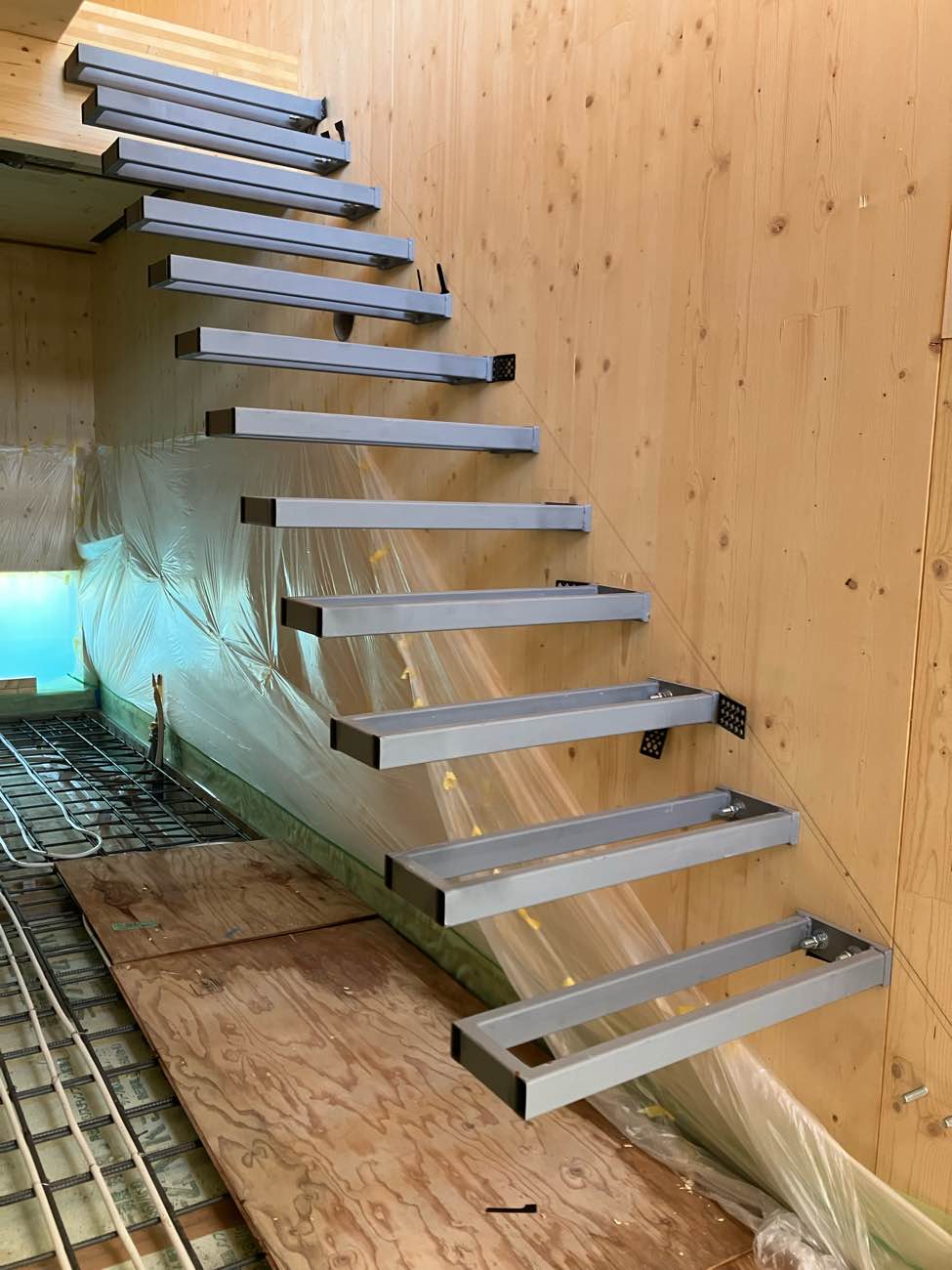 まるで浮いているような木製階段の完成です! (;´∀`)