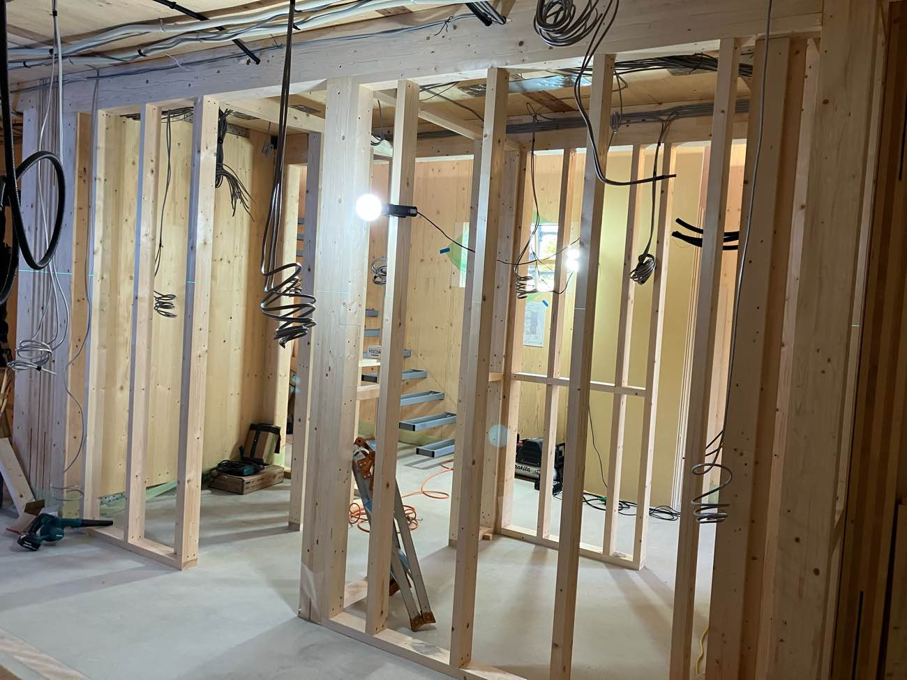 まずは間仕切り壁の骨組みをどんどん建てていきます。