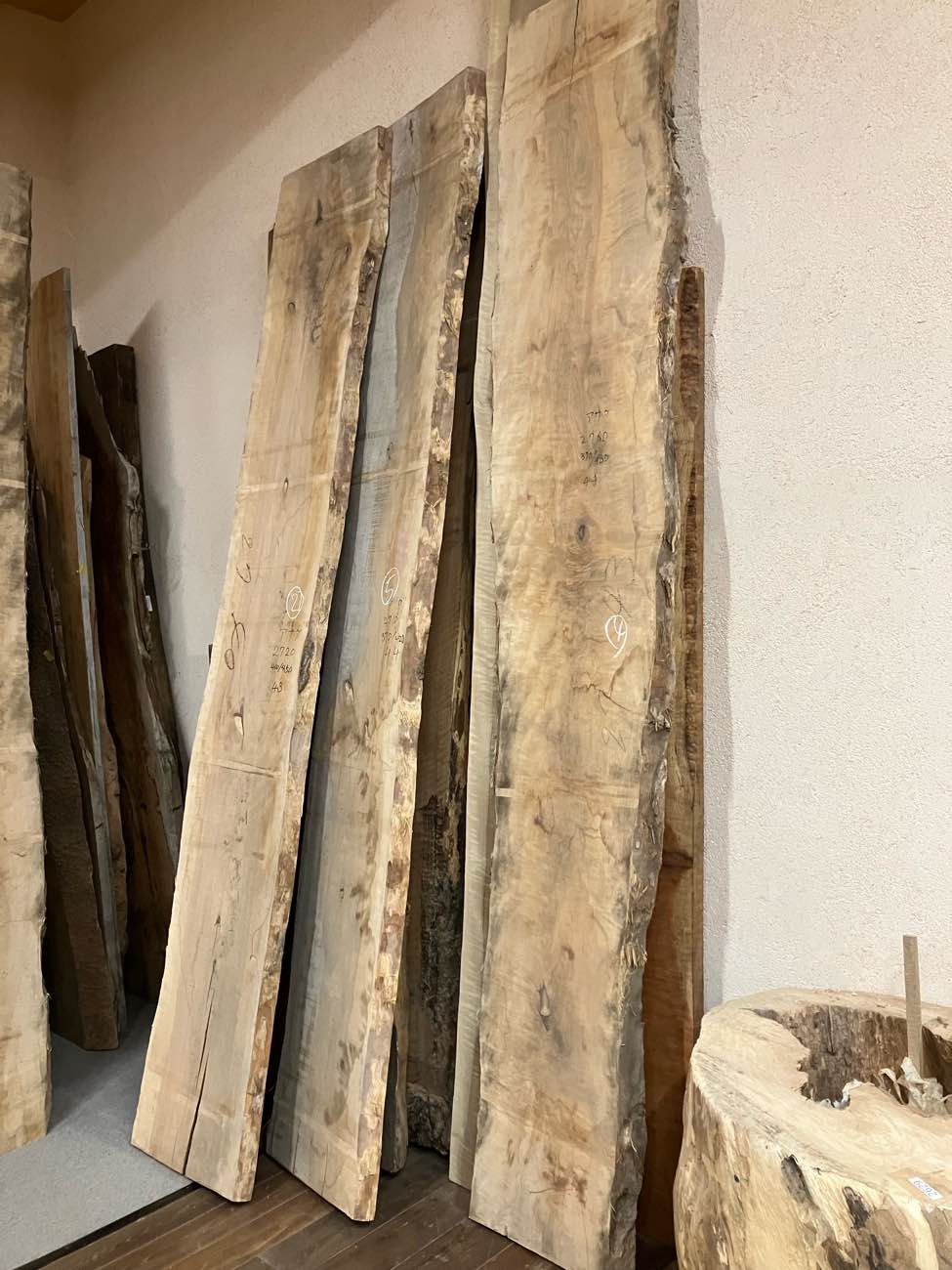 木材はよ~く乾燥させてから加工されますが、アサダは乾燥させるとねじれや変形が他の材種に比べて起こりやすいようで、ゆっくりじっくり自然乾燥させる必要があるそう…ただし手間がかかる分、肌目は美しく、磨くと光沢が出てとてもキレイな仕上がりになります!