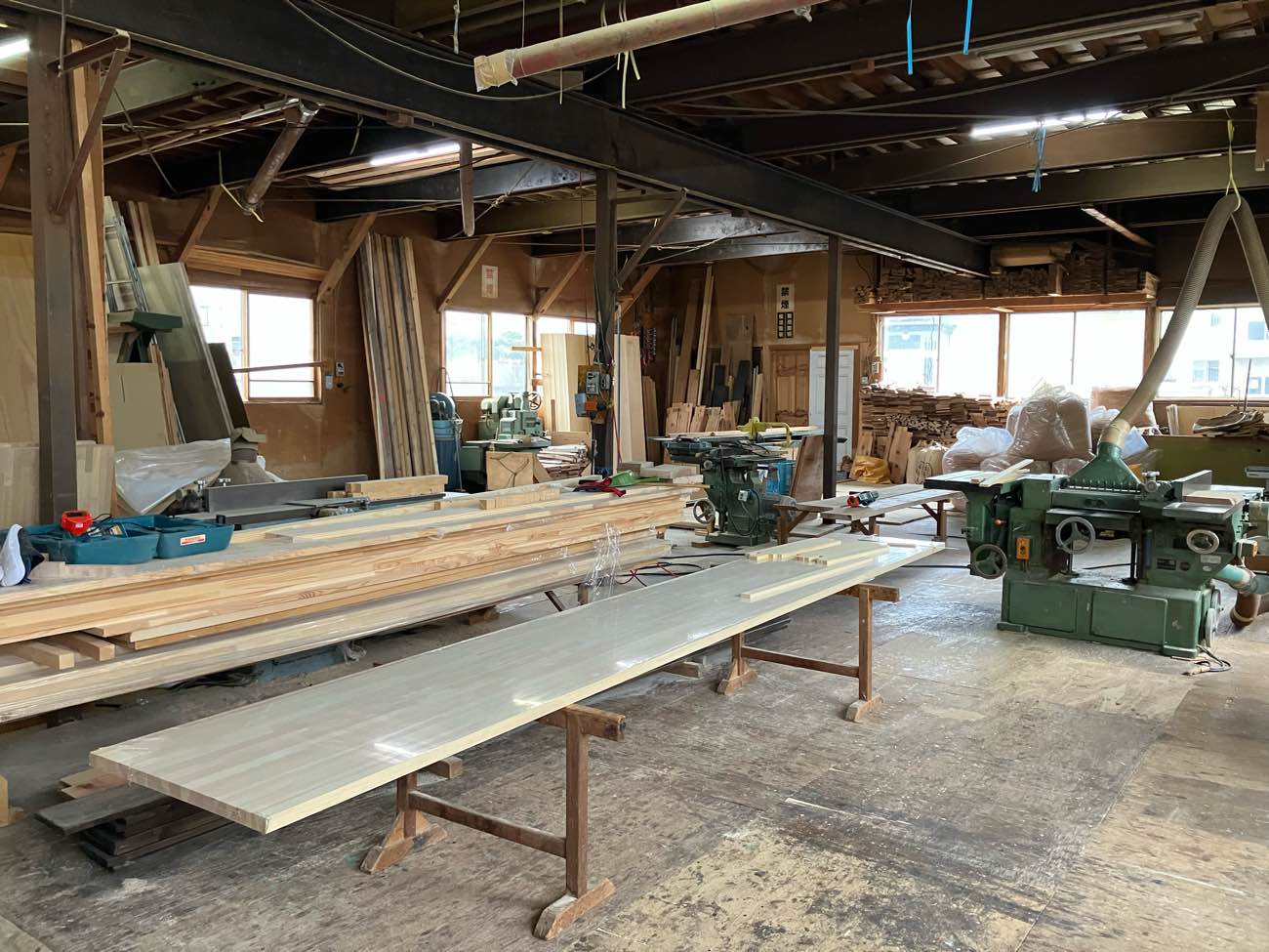 加工場には大きな木材がたくさん運び込まれるので、中は広いですね (゜_゜>)