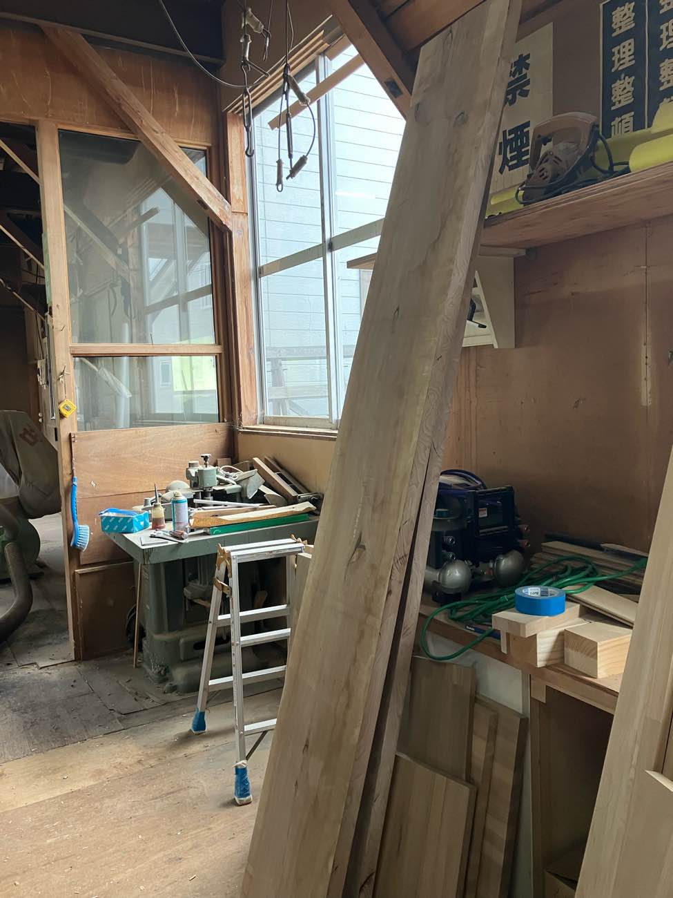ここでは主に自社物件の家具・建具の加工が行われています。選ばれしアサダさんは、我が建具チームに引き取られました (‘◇’)ゞ