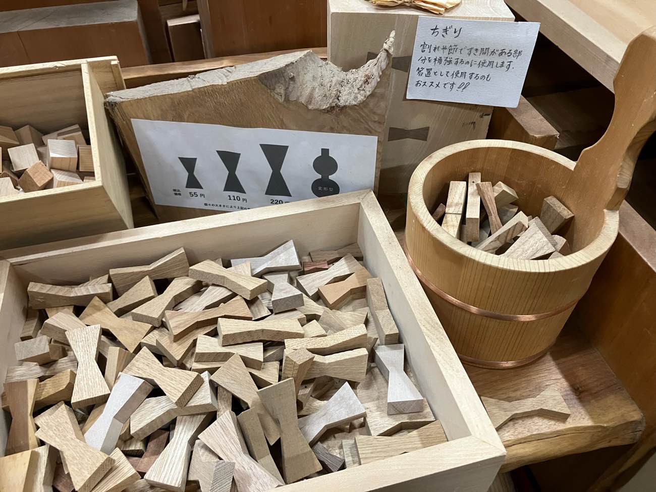 この埋め込まれているものは「契り(ちぎり)」という材料で、この見た目から蝶々とも呼ばれたりするみたいです。