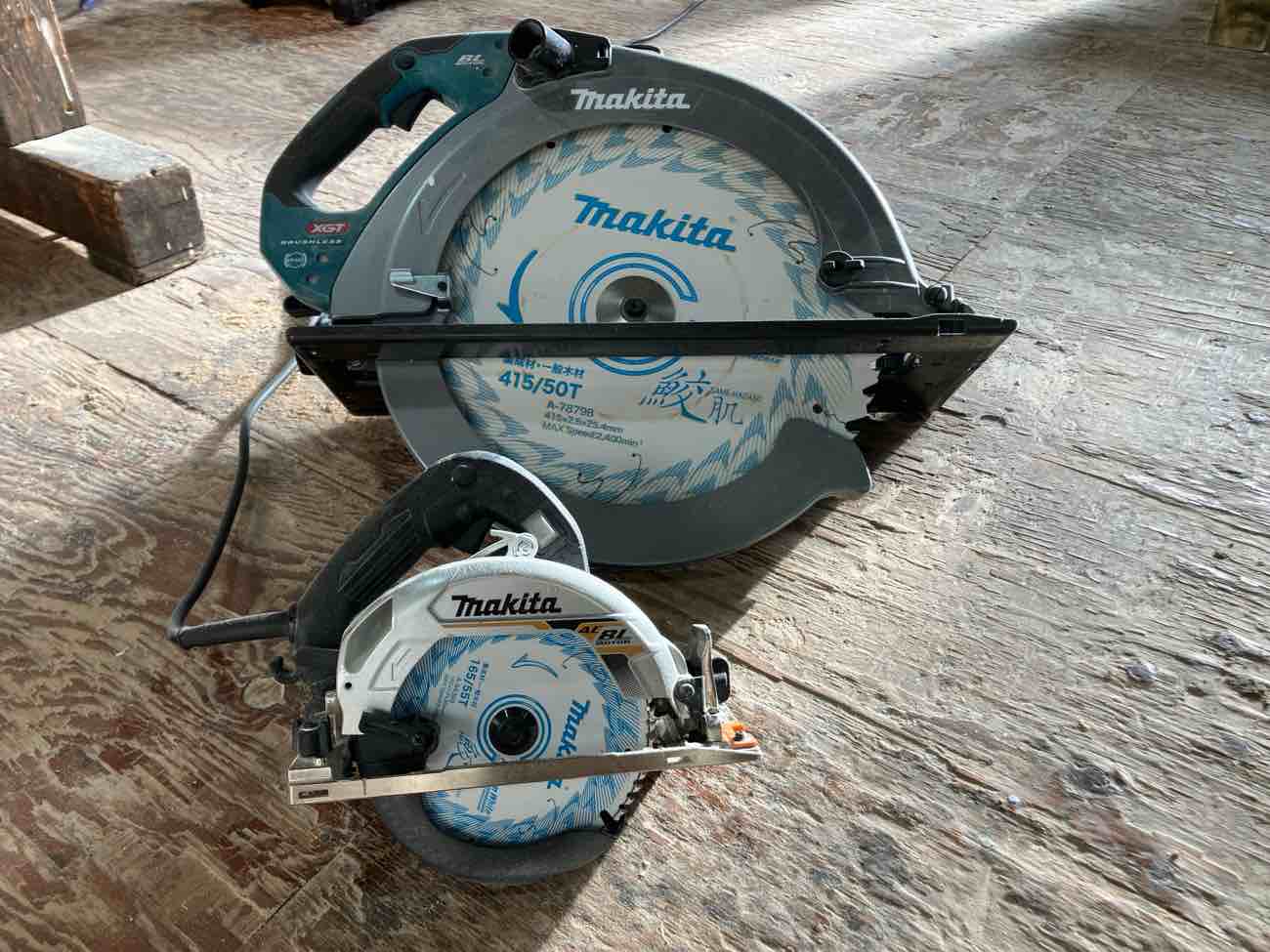 刃の直径がおよそ3倍もある超巨大丸のこを使用していました。