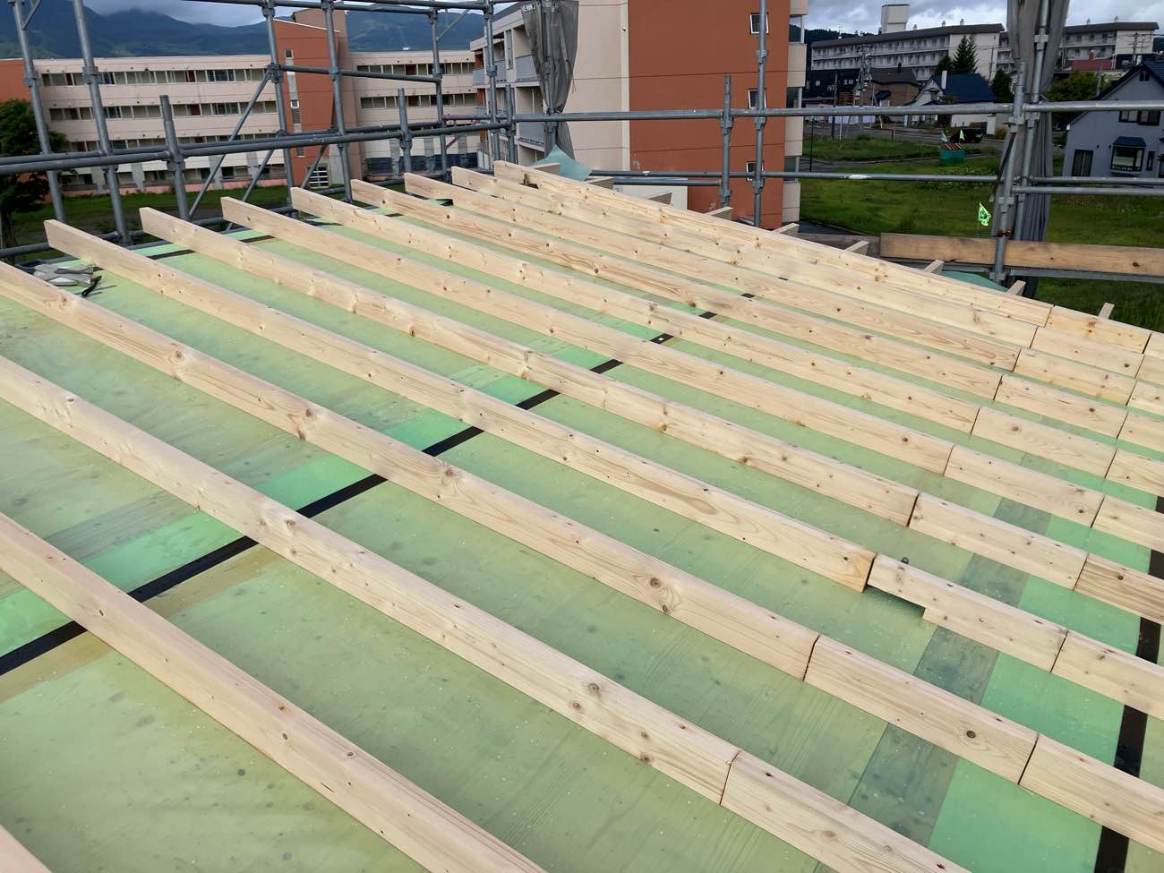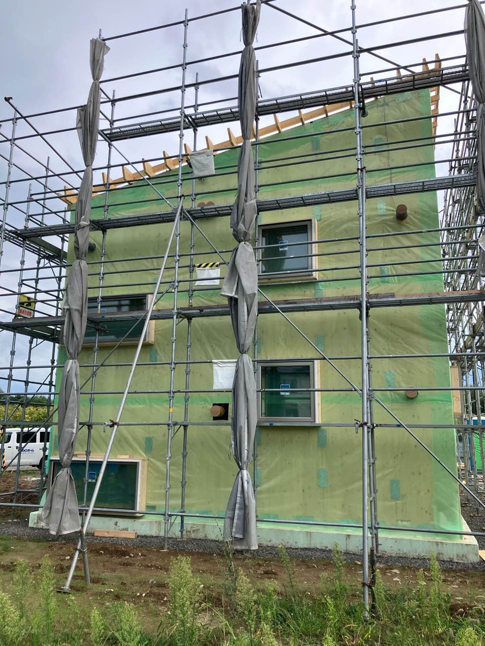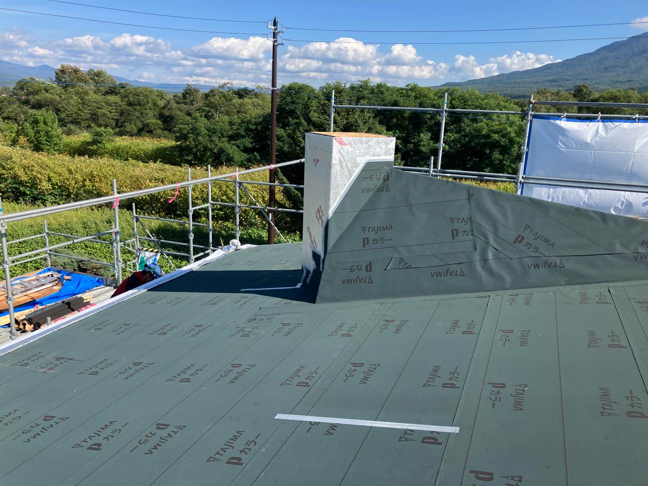 前回は外壁に気密シート、屋根にルーフィングが貼られたところまでお送りしましたね。