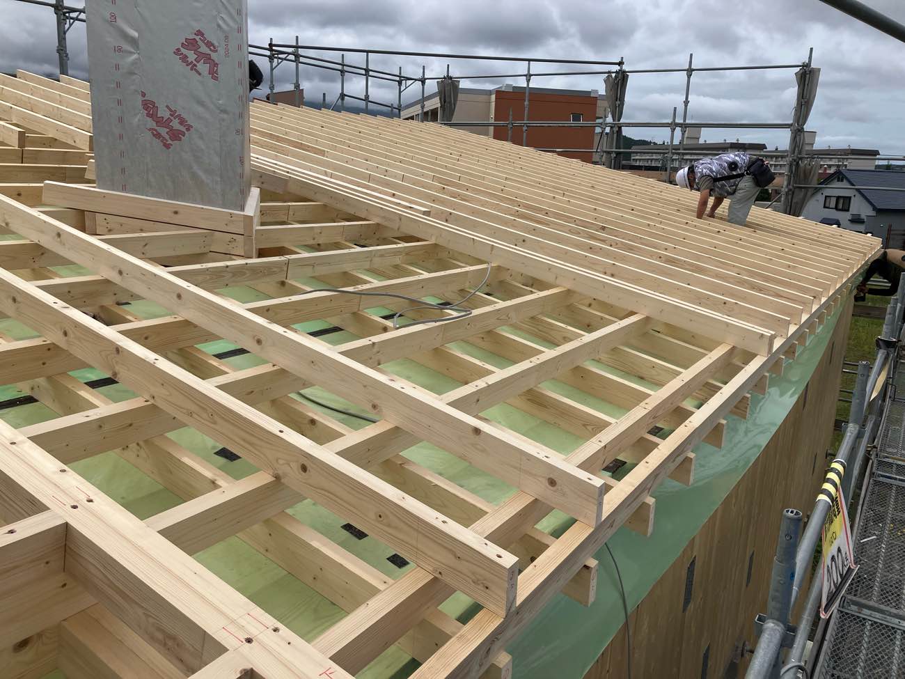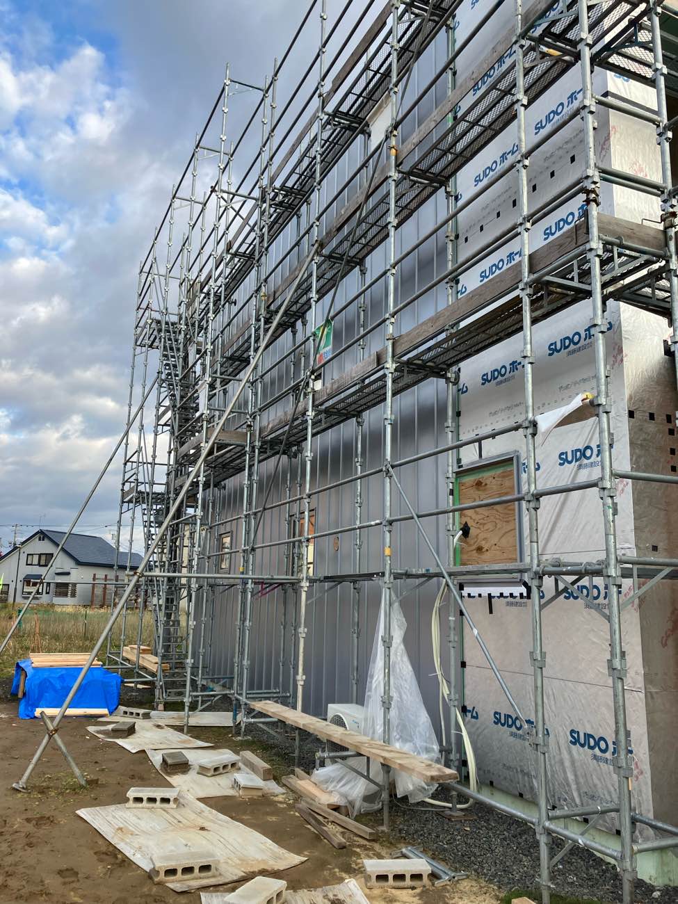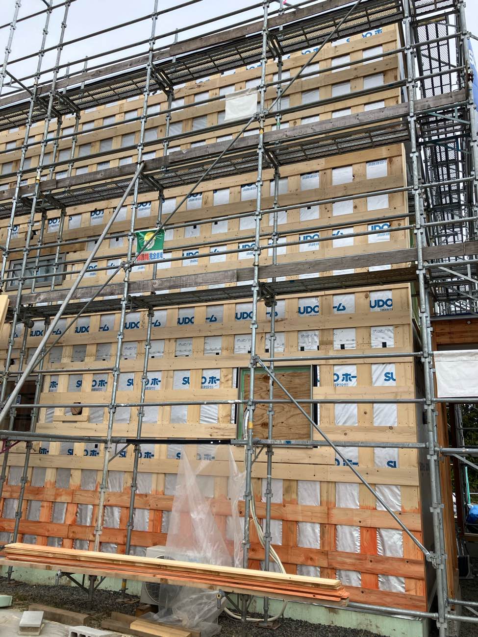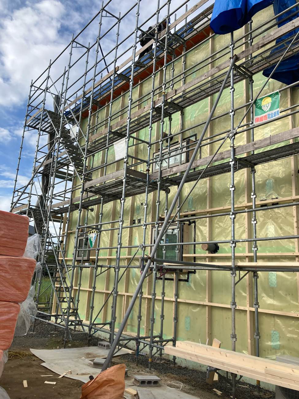 前回は外壁に気密シート、屋根にルーフィングが貼られたところまでお送りしましたね。