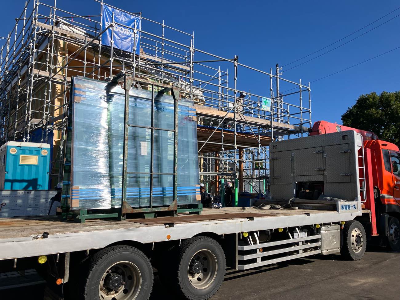 厳重に梱包されたガラスが現場にやってきましたよ~