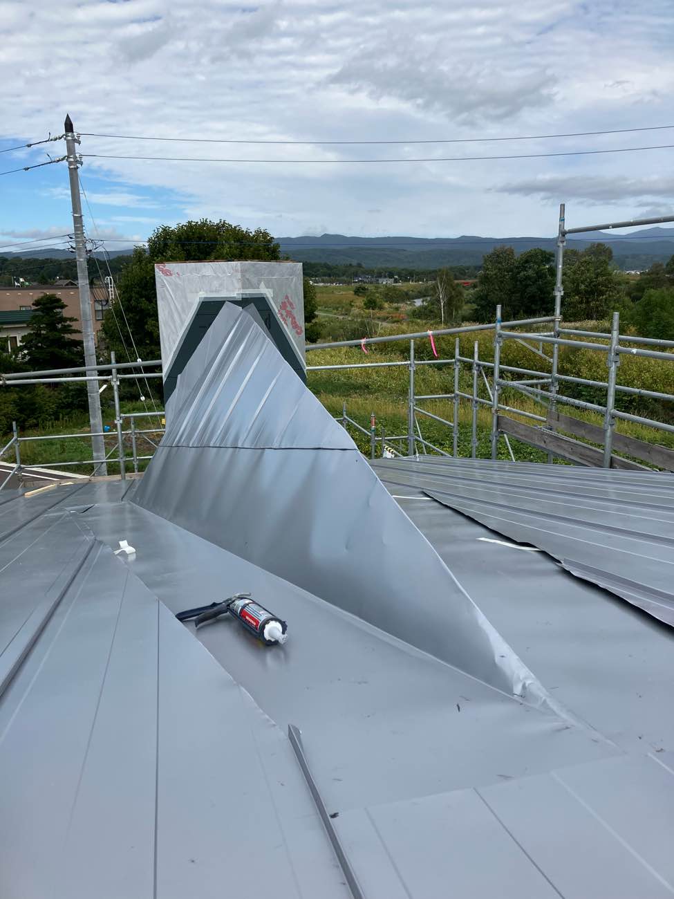 前に紹介した煙突の雪割り部分もしっかり板金が施工されてますね。