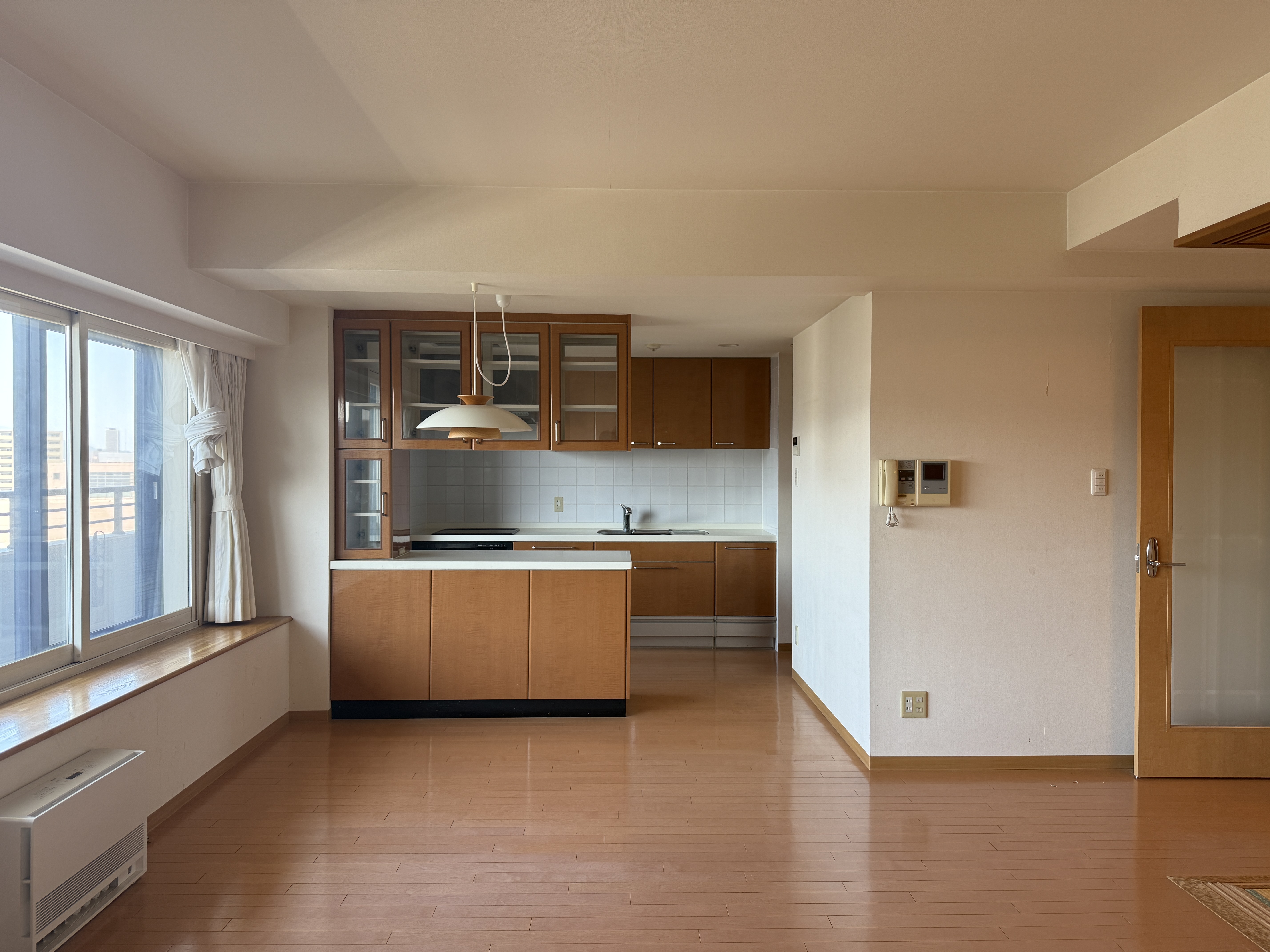 室内の写真、リビングからキッチンです。