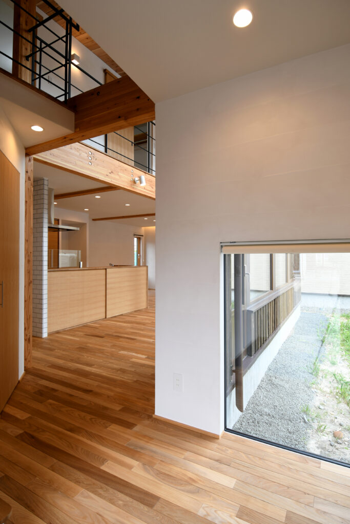 吹抜けにある大きな開口から陽光が降り注ぐ「なついろのいえ」